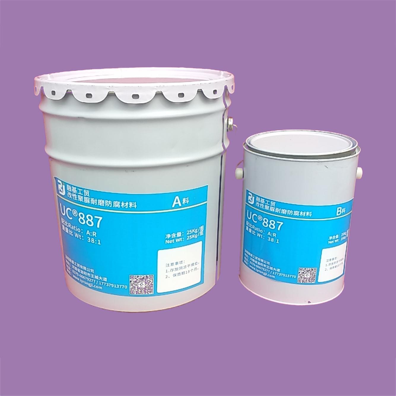 RJ-UC®887改性聚脲耐磨防腐材料可用于防腐,耐磨,防水,防护。用于金属或者混凝土表面。RJ-UC®887能保护经受重度磨损和高度冲击力条件下的钢、混凝土和聚酯表面。RJ-UC®887比钢具有高得多的耐磨性,同时因为不粘附、摩擦系数小,可以大大加速其表面移动的诸如砂料等物体的运动,大大提高生产效率。RJ-UC®887的一些基本应用包括:粮食和化肥储藏罐、斜槽传送带、运砂车的底盘、运土铲车斗、工业地坪和螺旋升降器等。还广泛的应用于采矿业,如自卸车、传送带、过滤设备和粉煤灰泥罐。同时也广泛应用于水力发电工业,如电厂防腐:污水池,除盐水箱,除硫设施,管线,冷却水槽防腐,户外大型音箱的保护。化工及生活污水池,淡水池,盐水池,及管线内外壁,水坝闸门、垃圾挡板、水箱、水泵、叶轮和罩等。还应用于要求减少机械设备噪音的纸浆和造纸业,如仪表盘和输送管。在农业方面应用也非常广泛,如螺旋升降机、需减弱噪音和减少磨损的螺钉、榨葡萄汁的底盘和收集箱等等